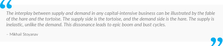 Industries with favourable supply-side dynamics have typically provided a rich hunting ground for long-term, countercyclical investors like us. Capital cycles play out over several years, and being caught on the wrong side of the cycle can be extremely painful. However, supply-side constraints ultimately result in multi-year inflections in pricing power and earnings, leading to significant potential returns for investors who have the patience to wait.