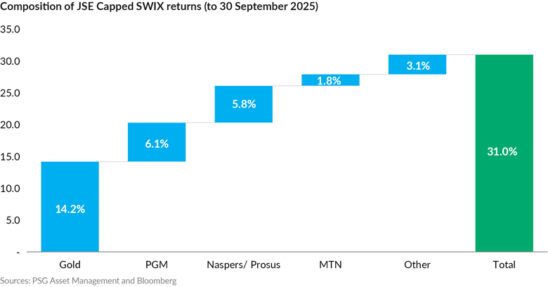 This article was updated on 1 December 2025 to correct the attribution analysis for the JSE Capped SWIX Index.