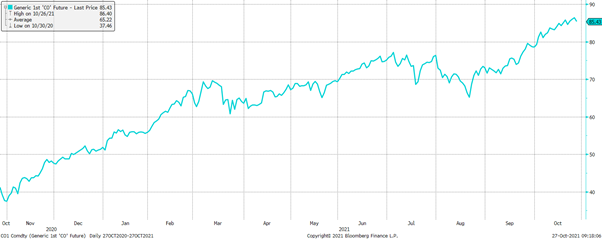 Nog ʼn aspek om dop te hou, is die olieprys, wat sterk gestyg het, en die impak hiervan op inflasie en ekonomiese herstel wêreldwyd. Hoër energiepryse lei uiteindelik daartoe dat maatskappye die verkoopspryse van hul produkte verhoog om winsgewendheid te behou. Dit sal lei tot hoër inflasie, maar ook weens druk op die verbruiker se beursie, tot laer ekonomiese groei.