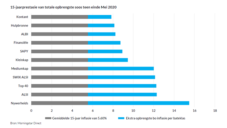 maatstawwe te wees, en selfs nog belangriker, die doelwitte van jou finansiële plan. Hierdie doelwitte het dikwels ook spesifieke beleggingstermyne, wat uiters belangrik is om te oorweeg wanneer hierdie syfers hersien word. Wanneer beleggings op groei gemik is, sluit die portefeuljesamestelling dikwels aandele in, maar om aandele oor ’n tydperk van ’n paar maande te evalueer, kan ’n mens op ’n dwaalspoor laat beland. Ons het nou ’n goeie voorbeeld hiervan, waar markte onder druk verkeer sedert markonbestendigheid weens COVID-19 laat in Februarie verlede jaar in die markte posgevat het, maar as jy na die langertermyn-prentjie