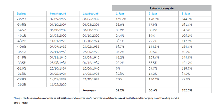 Hoewel die onlangse verlede ’n swak aanwyser is van wat die toekoms inhou, is daar tog ’n paar waardevolle lesse wat ons nie kan ignoreer wanneer ons na langer tydperke in die geskiedenis kyk nie. Wat kan ons uit vorige markdalings leer?