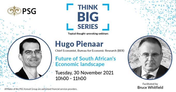 The series is a collection of dialogues with high-value speakers hosted by award-winning financial journalist Bruce Whitfield and top PSG executives. Each topic addresses burning issues that are concerning South Africans in these uncertain times. The Think Big series aims to empower you with factual evidence and manage expectations on various aspects of how the current situation could unfold.