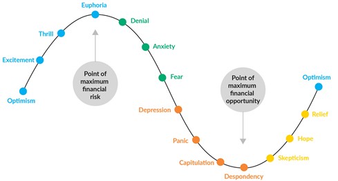 A typical market cycle and emotions investors experience at each stage